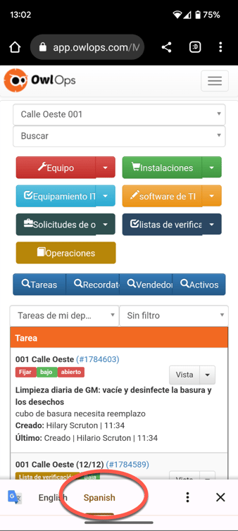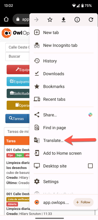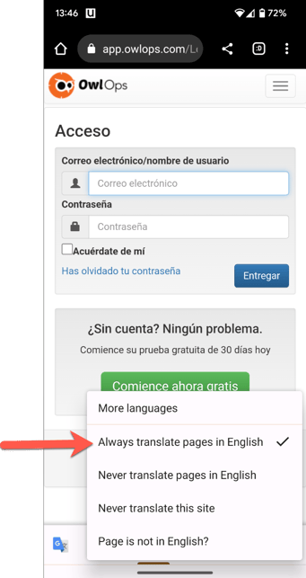From the 3-dot menu at the bottom, select "Always translate pages in [language]" OwlOps should now be translated in the preferred language.