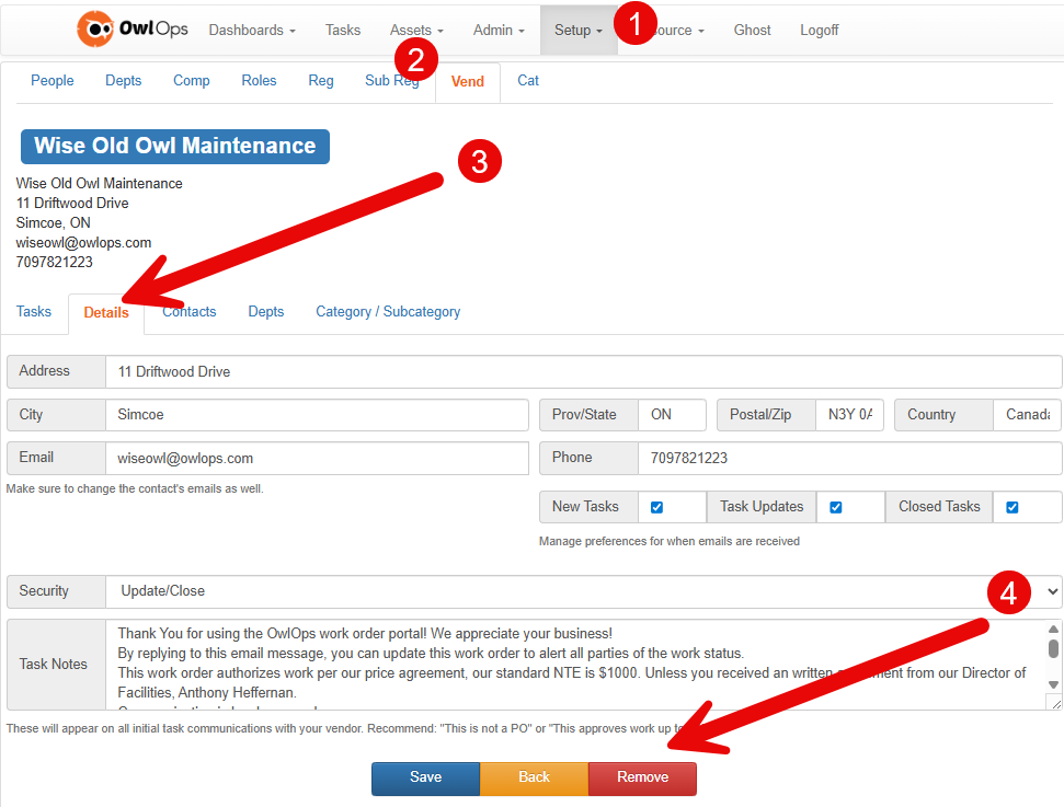 If you need to remove a vendor from your OwlOps account, you can do so from the Vendor Setup area. Follow the steps below.
